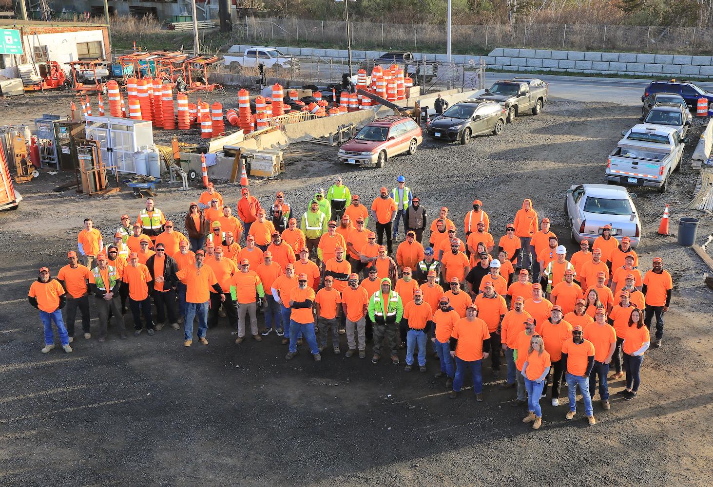 The Mixmaster Rehabilitation Project Team day and night crew got together to celebrate Go Orange Day. This initiative strives to bring awareness to the many people who die each year in work zone accidents.